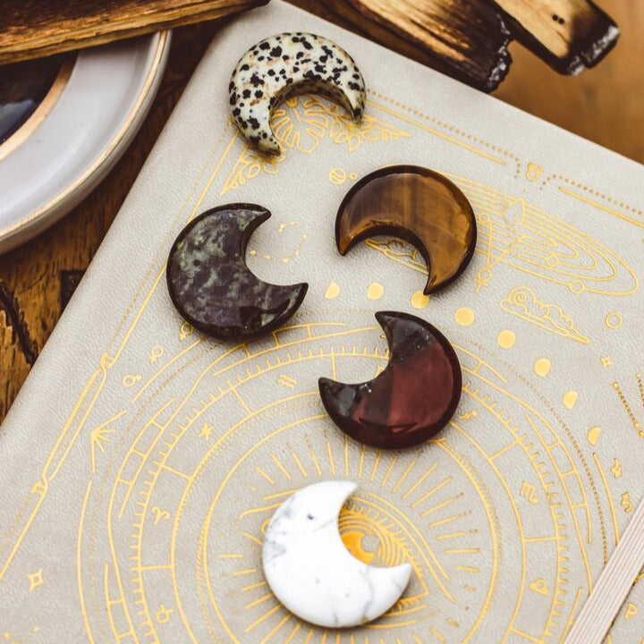 These beautifully carved crystal crescent moons are crafted from genuine, ethically sourced gemstones. Each moon is hand-polished to a smooth finish, showcasing the natural color, pattern, and energy of the stone.