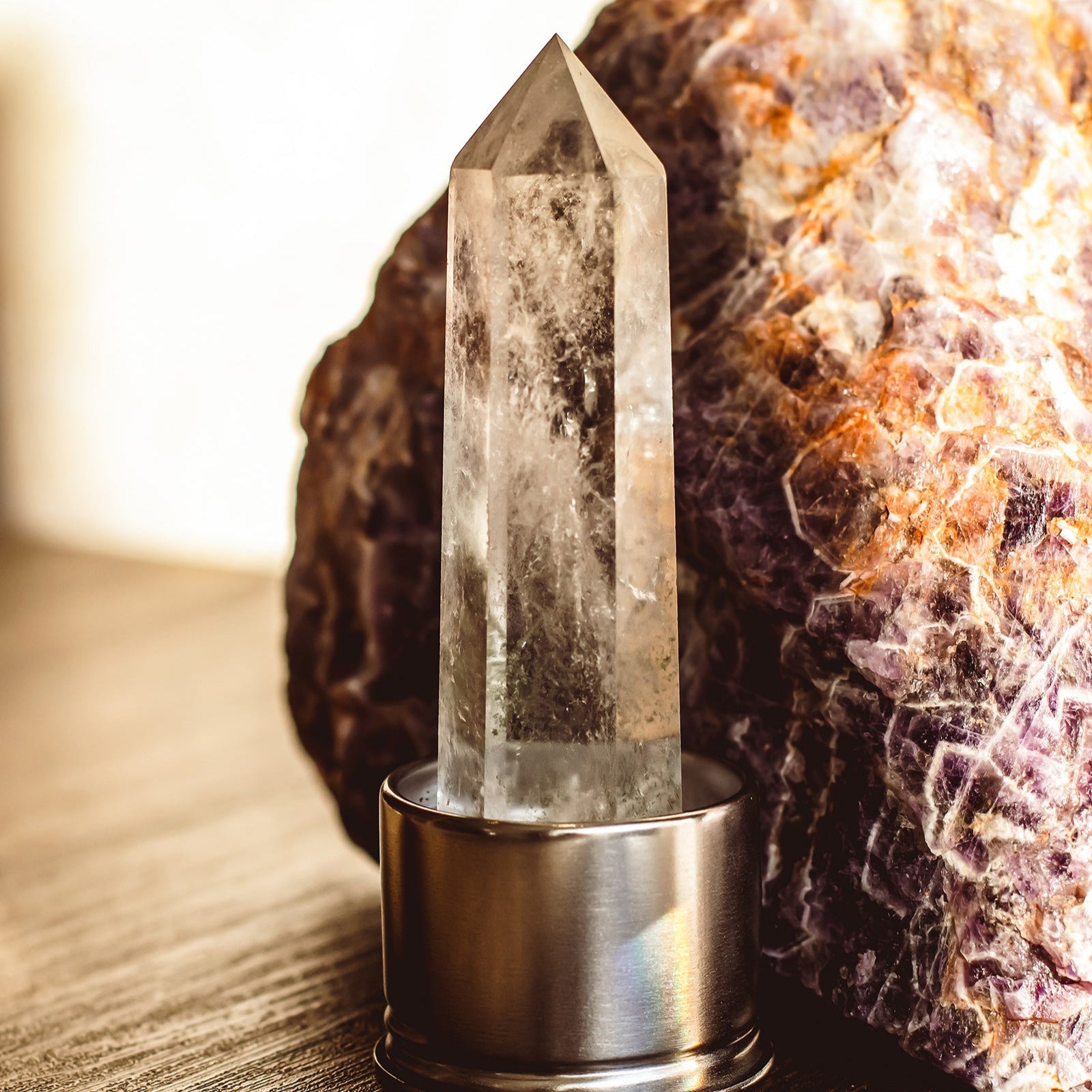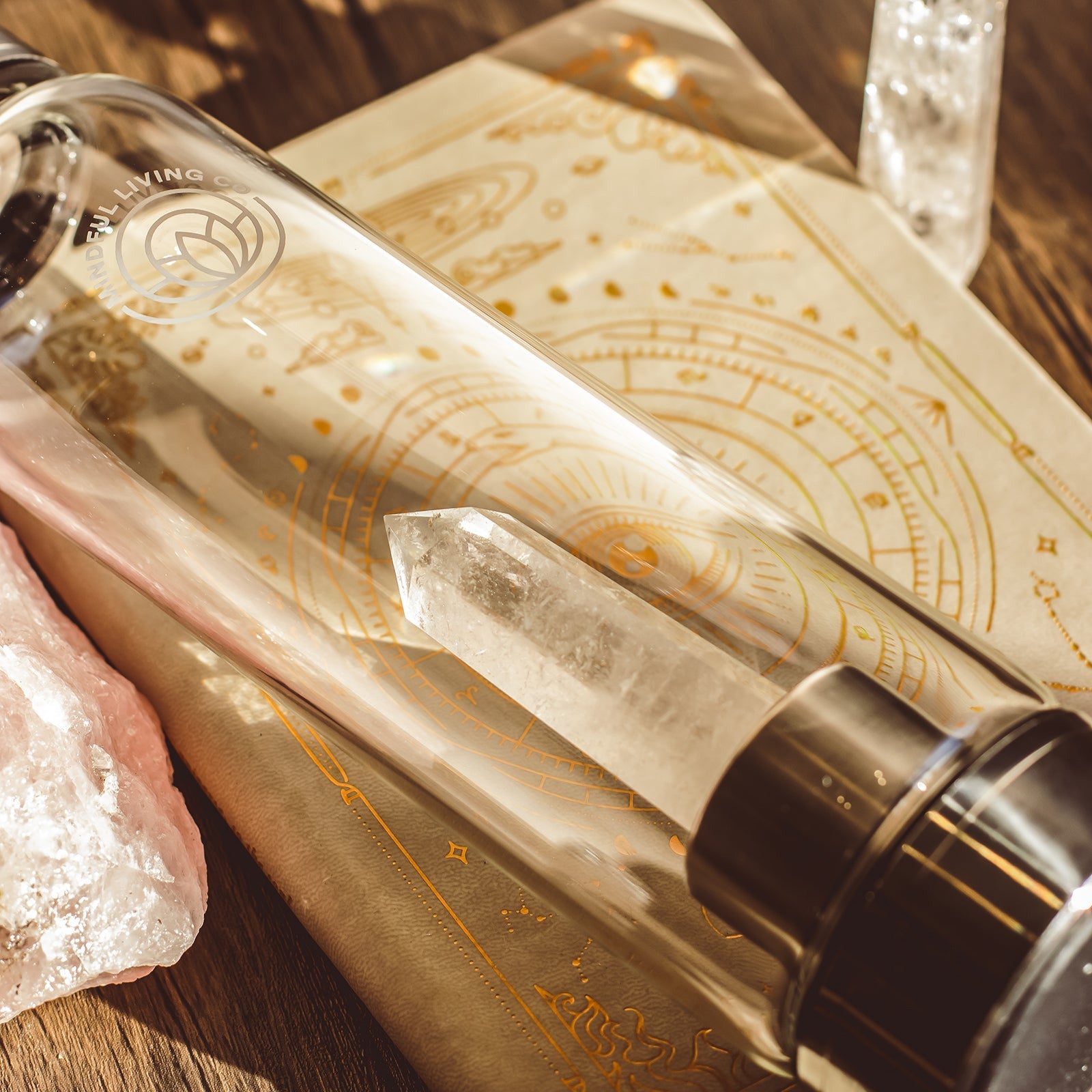 Sip your way to spiritual alignment with our Crystal Clear Wand Bottle, featuring a stunning natural Clear Quartz wand at its core. This beautifully crafted glass bottle turns your daily hydration into a mindful ritual, infusing your water with the clarifying and amplifying properties of Clear Quartz.