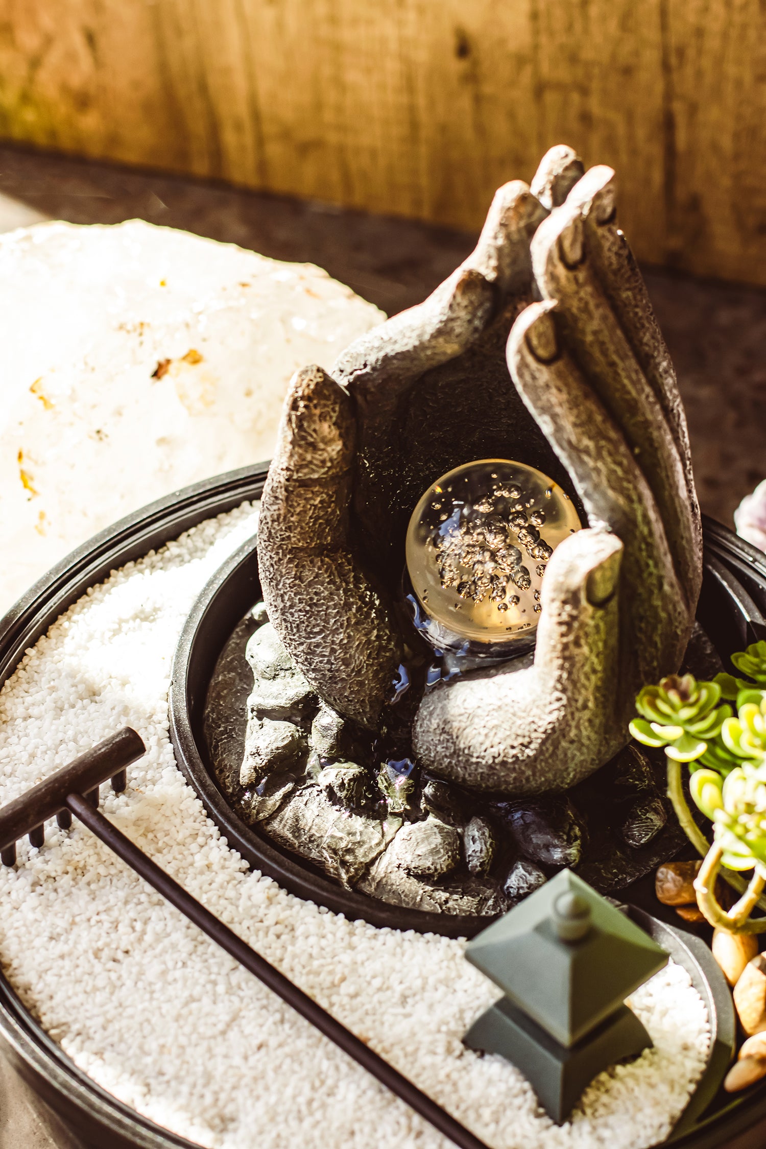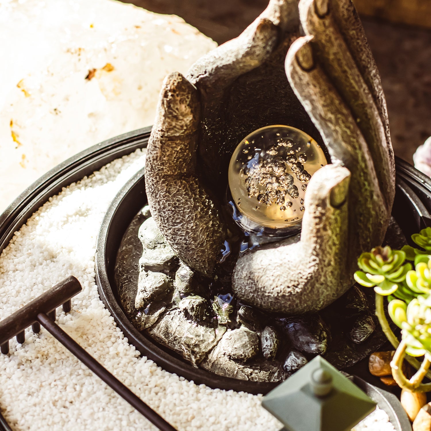 Hand Zen Garden Sensory Indoor Water Feature with spinning ball | Soothing Ambiance & Modern Design