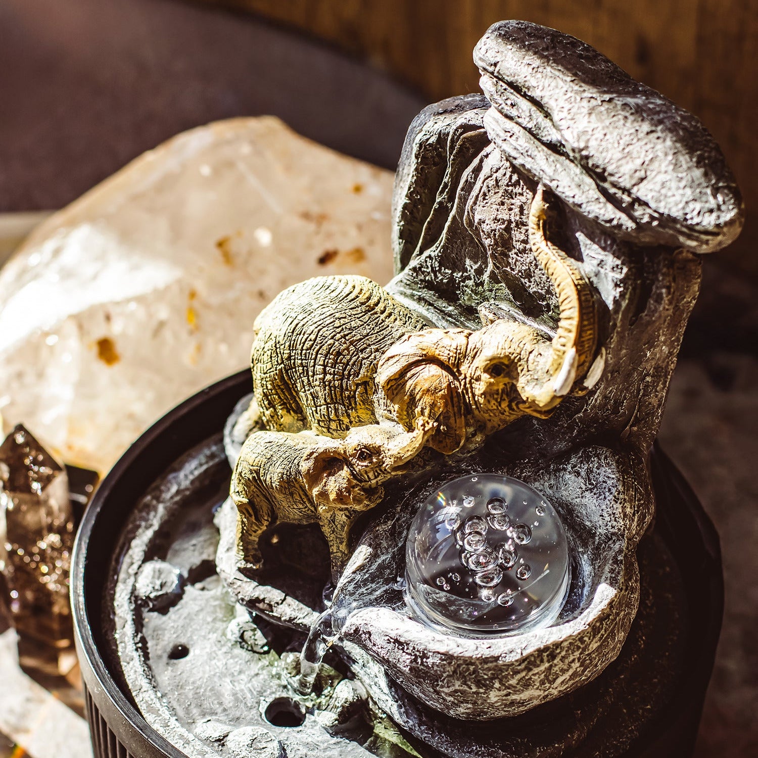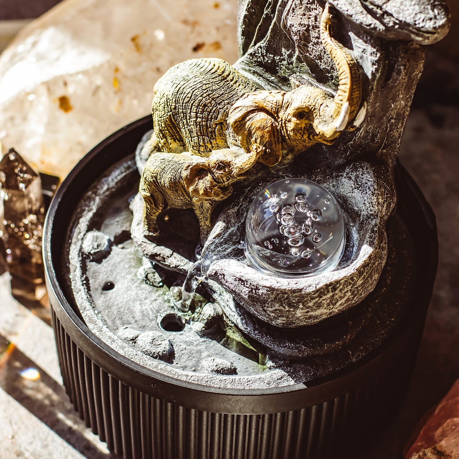Elephant Sensory Indoor Water Feature with Spinning Glass Ball | Soothing Ambiance & Modern Design