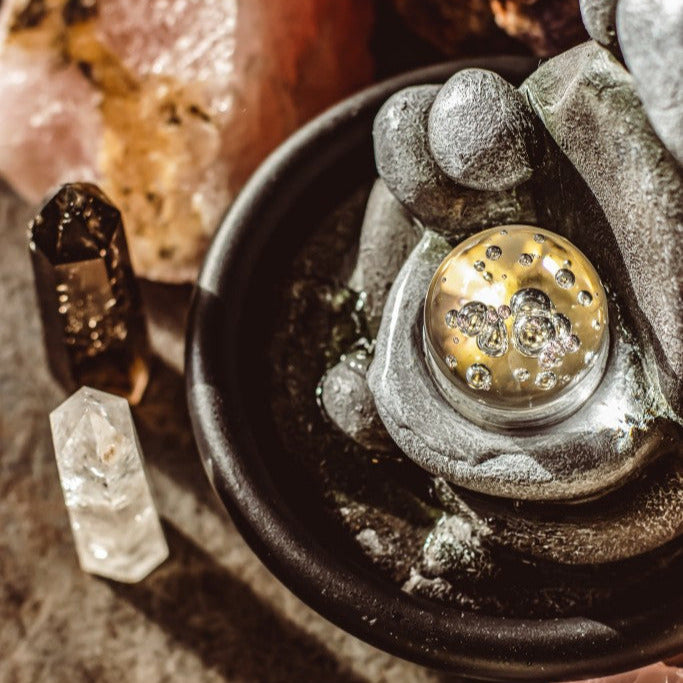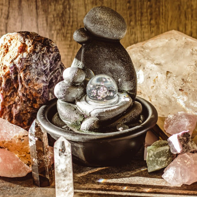 Stacked Rockfall Sensory Indoor Water Feature with Spinning Glass Ball | Soothing Ambiance & Modern Design
