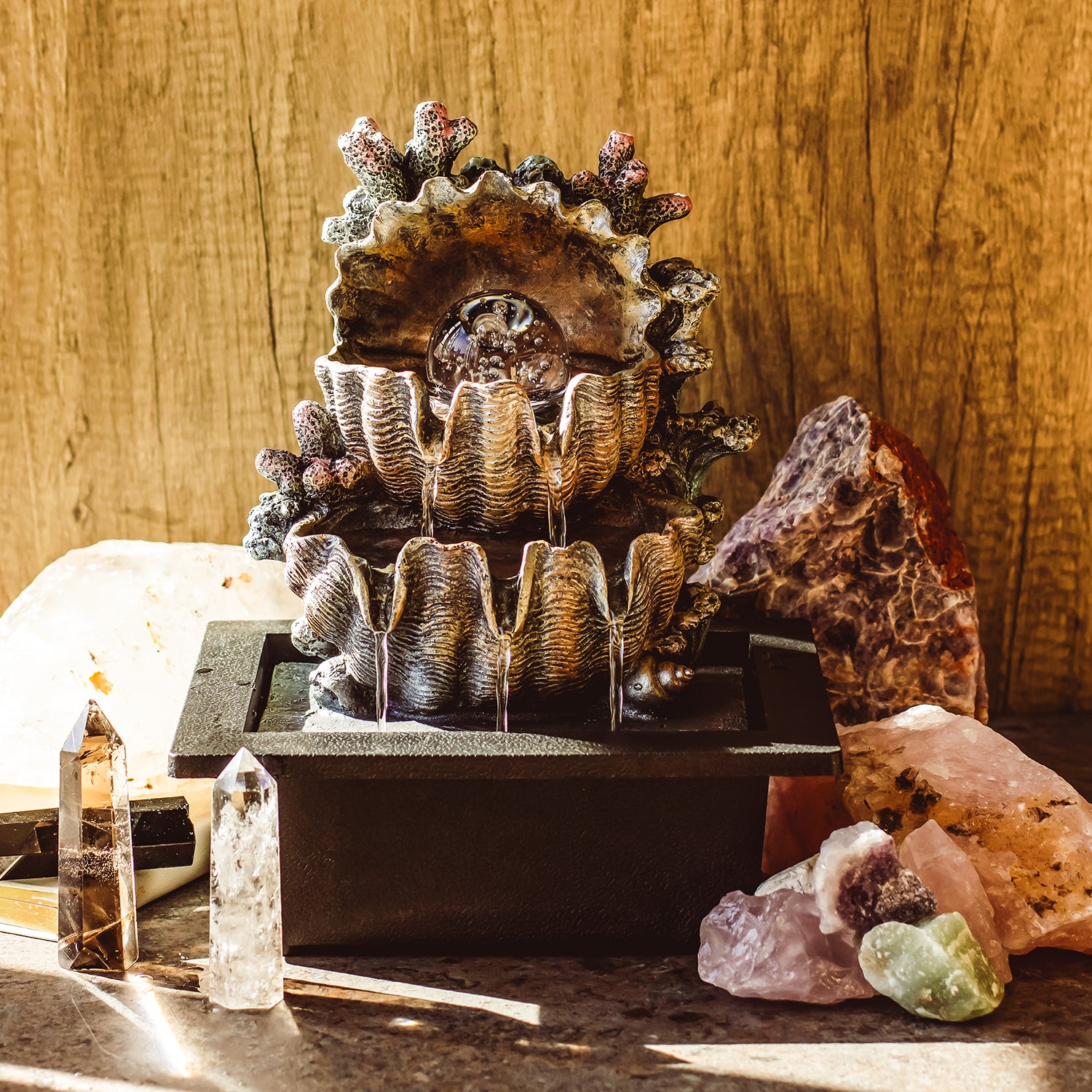 Serenity Shell Indoor Water Feature with Spinning Ball