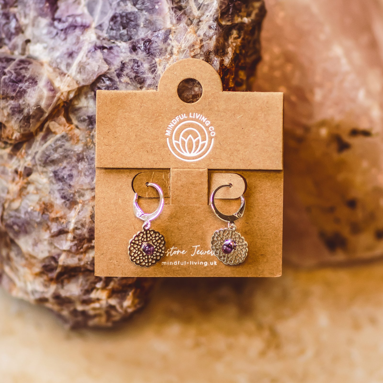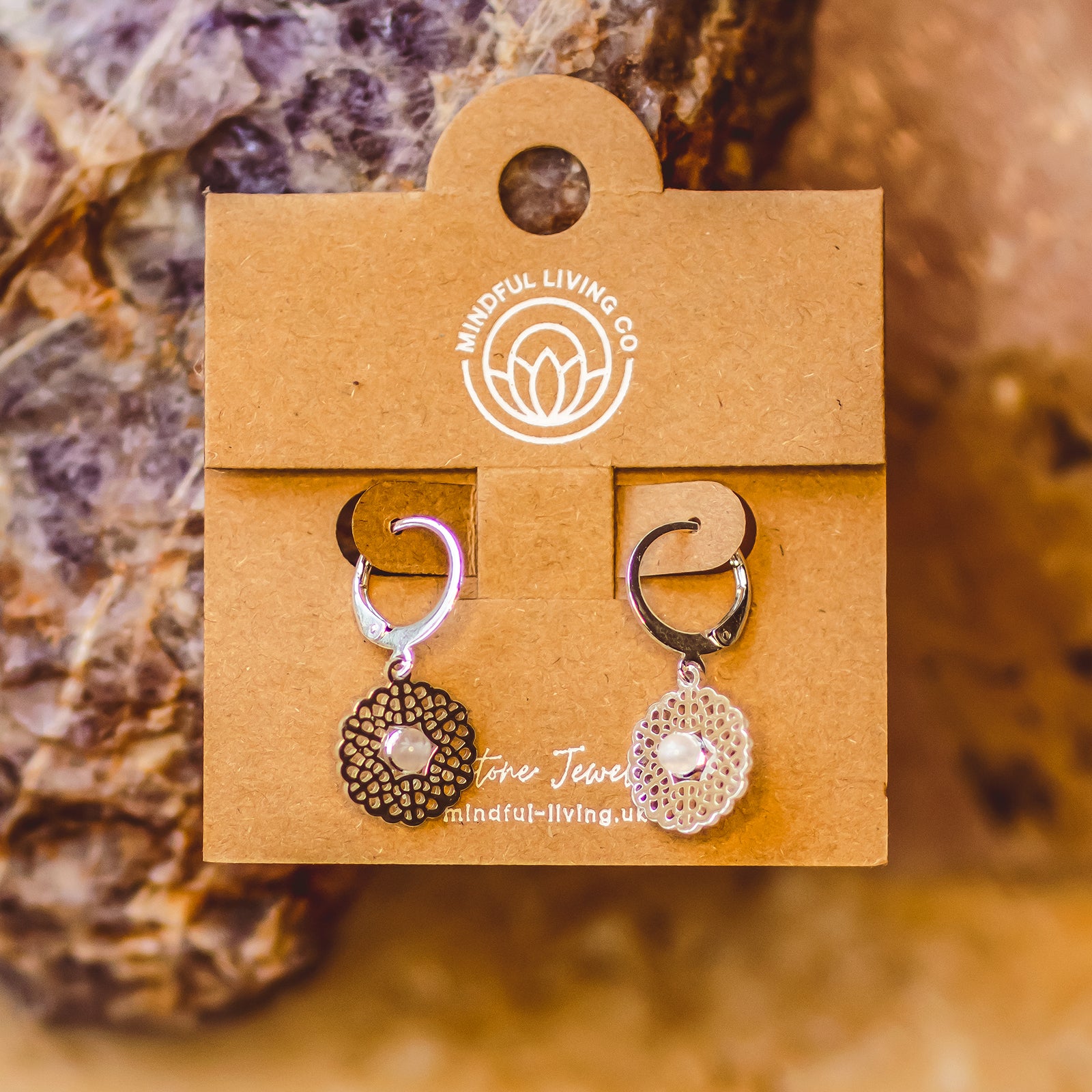 Mandala Gemstone Earrings Collection – 18k Gold or Silver Plated