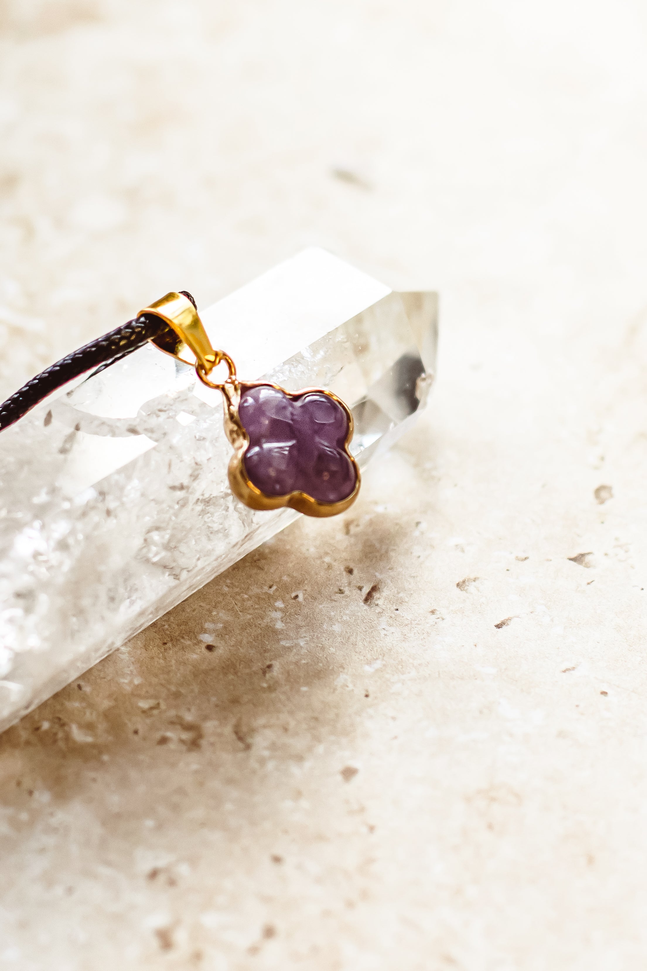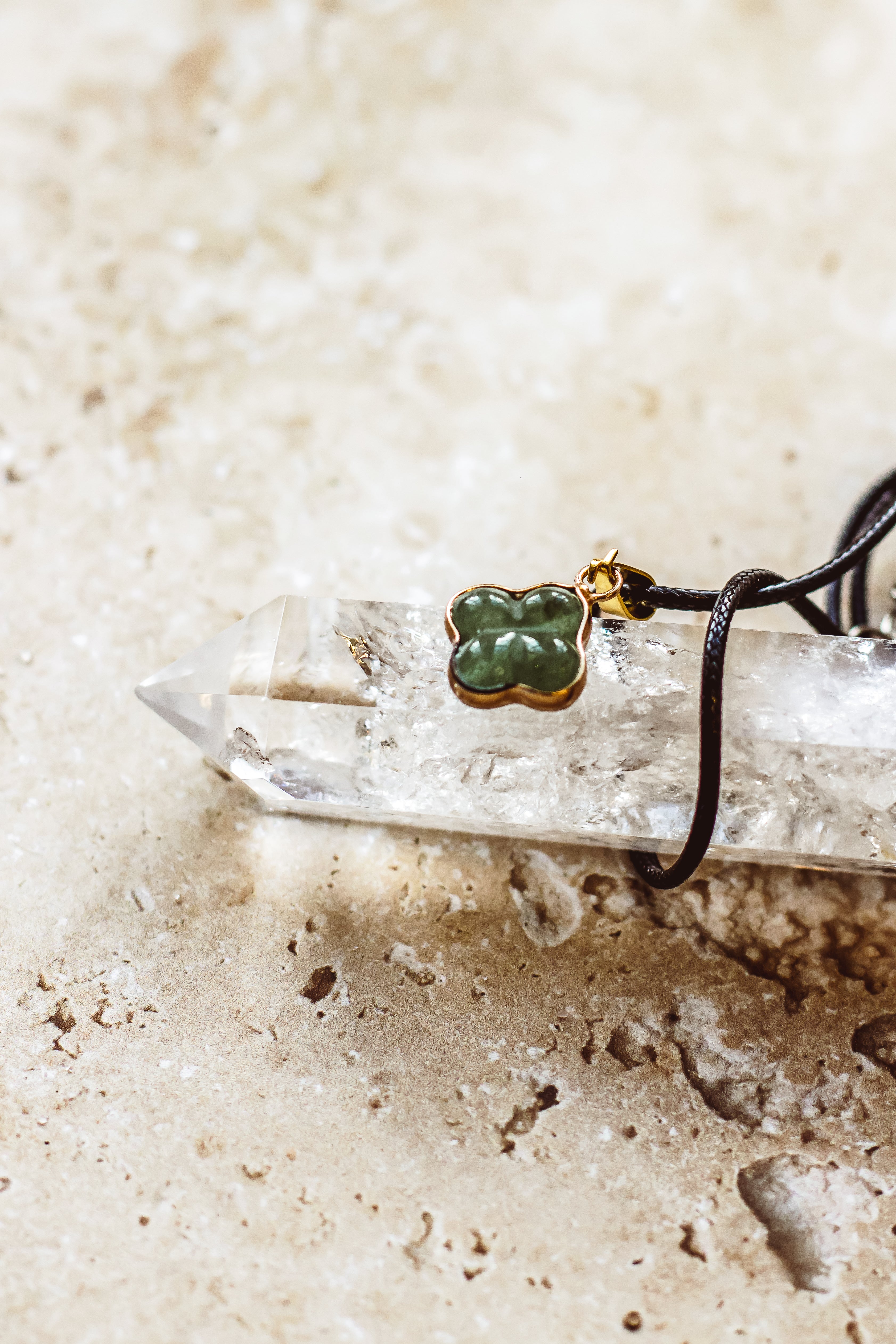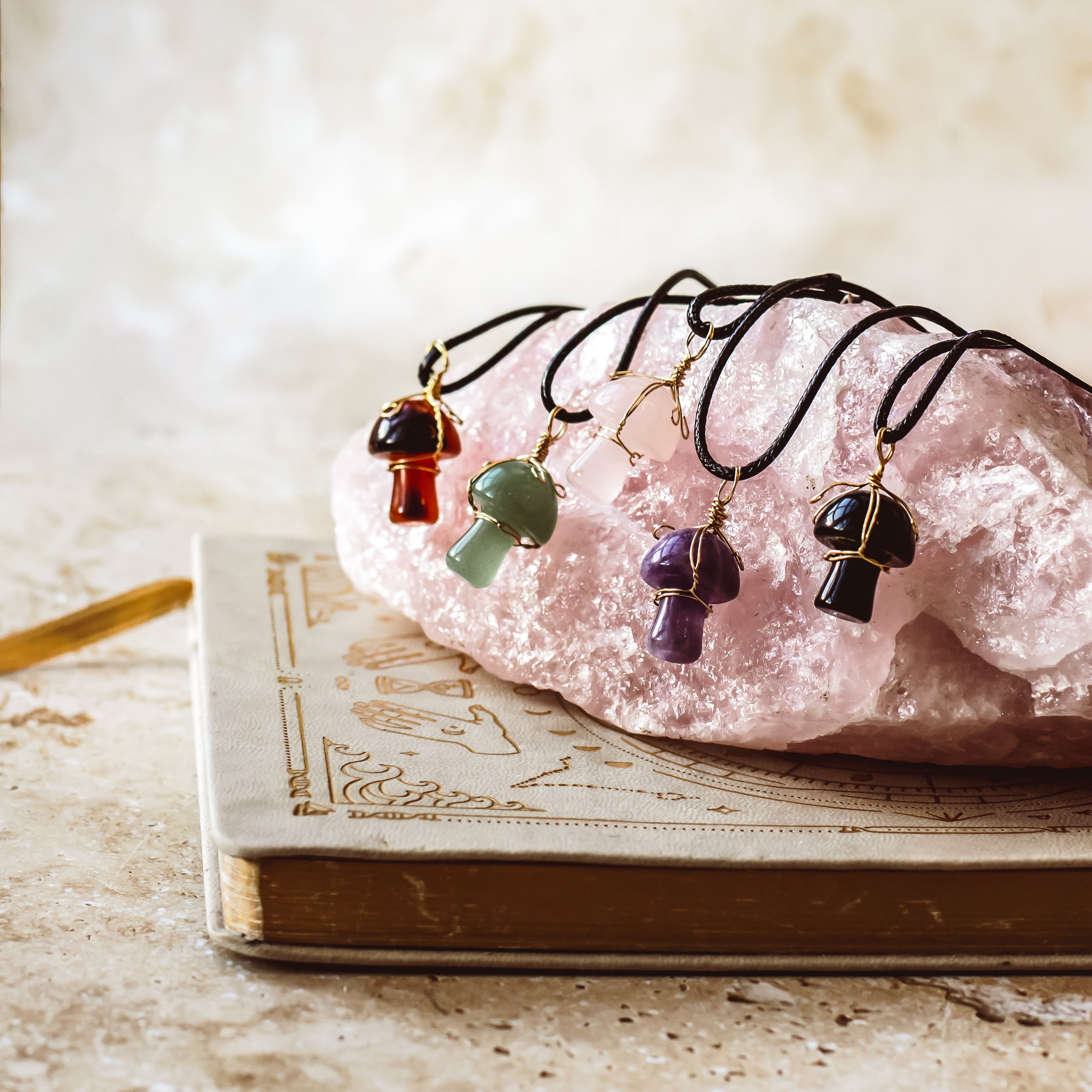 Each pendant is carved from genuine crystal and either wire-wrapped or set in a minimalist gold-toned mount. The natural waxed cord adjusts easily to your ideal length with a sliding knot, adding a casual and earthy finish. A beautiful balance of spiritual meaning and boho style.