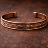 Copper has been valued for centuries for its grounding and balancing qualities, traditionally worn to support energy flow and overall wellbeing. Often associated with vitality and circulation, copper is believed to help restore harmony within the body, while magnetised designs are commonly chosen for their potential to enhance these effects. Each bracelet is handcrafted in India, celebrating traditional metalwork and timeless design, making it both a meaningful and wearable piece.