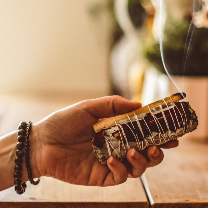 Palo santo brings warmth and sacred sweetness, known to attract good energy and raise the vibration of any space. A carefully chosen crystal—intuitively selected—completes the ritual, offering grounding, clarity or emotional support depending on your needs.